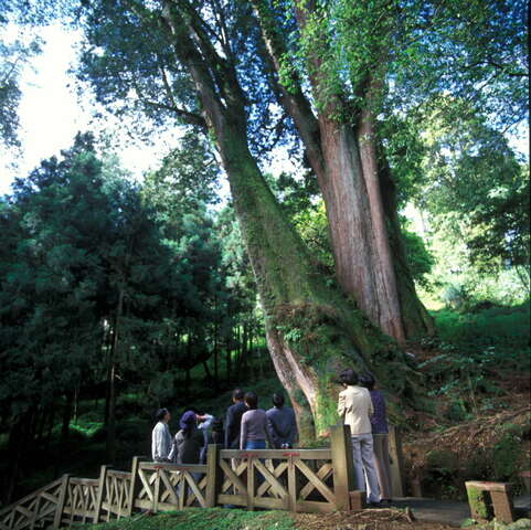 景點特色精簡說明:     當阿里山神木於1998年6月以自然放倒方式終結傳奇的一生後,取而代之的則是香林神木與巨木群棧道。目前阿里山國家森林遊樂區內共有二期巨木群棧道,以神怡橋為分界點,第一期棧道以千歲檜為起點,採高架木棧道及點狀水泥基座接地設計的生態工法興建,至神木遺址處為終點。棧道全長600公尺,沿途架高木橋3座,可欣賞20株的紅檜巨木,胸徑5~12.1公尺,樹高25~42公尺不等,1998年11月完工後,遊客漫步其間,莫不讚嘆「樹大就是美」的壯麗景致。1998年8月,為串連樹靈塔一帶的紅檜巨木,林務局在香林神木及千歲檜架設木柵圍欄,並興築觀景台,連同第一期的巨木群棧道,便形成遊樂區內頗具規模的巨木群系統。2001年起,位於阿里山神木遺址附近的神怡橋為起點,林務局針對原始檜木林再開闢第二期巨木群棧道,全長418公...