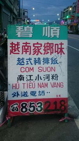 店家簡述:     「碧順越南家鄉味」位於成功鎮台11線上,提供台式家常料理及越南風味家常料理,包含台式炒飯、炒麵以及越式豬排飯、南江小河粉、越式春捲等,用料實在、價格親民,歡迎經過成功鎮的朋友不要錯過!