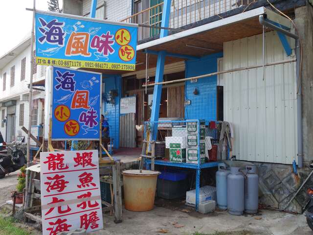 店家簡述:     「海風味小吃」位於台11線鹽寮村,餐廳原址過去是由在地人開設的雜貨店,後來第二代轉而經營「海風味小吃」餐廳,提供餐廳老闆親自下海捕捉的海產,像是龍蝦、九孔、海膽等,讓來到餐廳用餐的旅客們能享用到東海岸新鮮的美味海產;2016年開始營業,讓鹽寮又多一處可供饕客們選擇的美食餐廳。