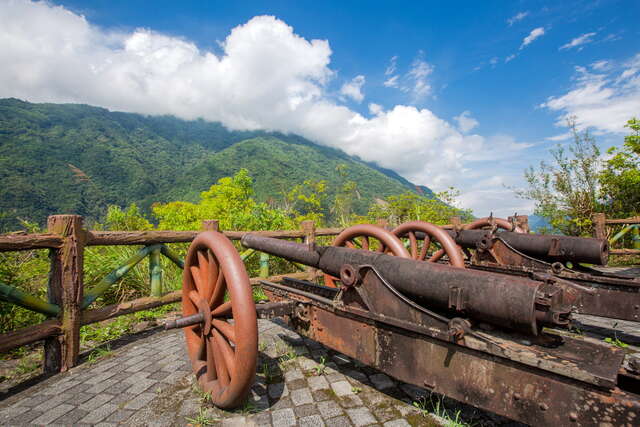 景點特色詳細說明:     順著蜿蜒的南橫公路來到霧鹿部落,依循指示、沿著小路來到深藏山林間的霧鹿砲台。兩座已有百年歲月的古砲位在制高點,站在這裡可以俯瞰遼闊的霧鹿部落、霧鹿峽谷,以及遠方層疊起伏的中央山脈,絕佳的視野與斑駁的砲身,見證了一段充滿血淚的抗日歷史。在日治時期,日本人為了集中管理散居山中的布農族部落,強制進行管理與沒收槍枝和彈藥,雙方爆發激烈衝突,以霧鹿抗日事件最具代表性。1927年,日本人開通新武至霧鹿的關山越嶺古道,運送日俄戰爭擄獲的俄製大砲,在制高點建設了霧鹿砲台,以武力鎮壓反抗的布農族,當年在附近的薩苦(大崙)、馬典古魯(摩天)兩地都設有砲台。隨二次世界大戰結束、日本無條件投降後,另外兩地的砲台已不復存在,僅存這兩座遺留在霧鹿國小後方的百年歷史古砲,伴著優美的風景,無聲訴說當年布農族為了保衛家園的抗日史蹟。