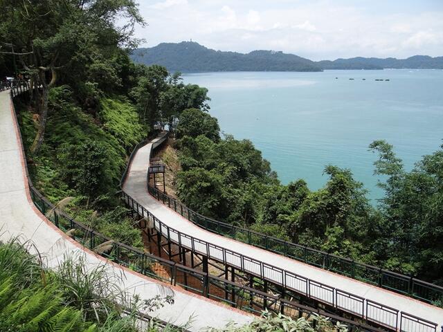 入口位於伊達邵中華電信大樓旁,棧道依湖畔而建,依山傍水、景色秀麗。該路線可通往日月潭纜車站,全程平緩舒適,適合親子同遊。