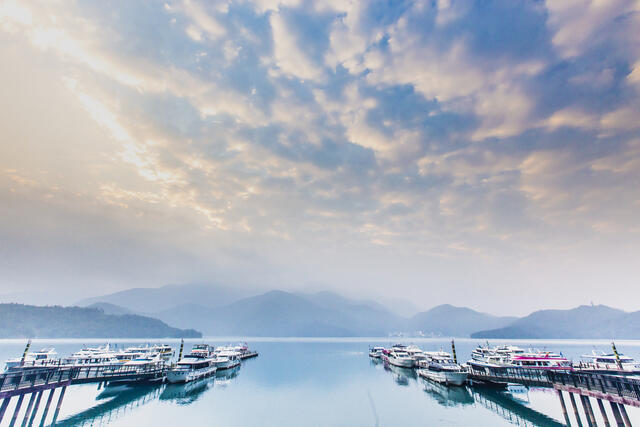 青山綠水的景緻,沿著岸邊的木造步道慢步,欣賞開闊的日月潭風光,潭水照映晨曦,眺望遠處的層層山嵐及慈恩塔,如畫般的景緻另人流連忘返。自然山水景色吸引無數佳人在此拍攝婚紗。