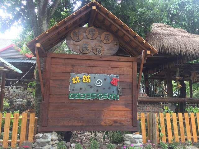 店家簡述:     兩層木造建築物與aveoveoyu泡茶涼亭以及魔豆咖啡屋,大門上雕飾著原住民傳統圖案,一旁則搭配著原住民木雕飾品,讓遊客一進入即可明顯感受原住民風味。來到這裡一定要跟主人家林姐聊聊天,感染她的熱情開朗,林姐煮的一手好料理,從後庭園隨手摘些野菜,立馬就能變化出一桌豐富菜餚,這裡的寧靜,很適合讓您短時間拋下工作的煩憂回歸簡單生活。